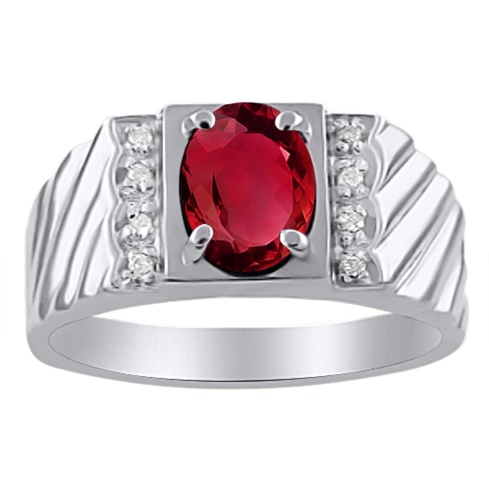 Mens Ruby Amp Diamond Ring Sterling Silver Or Yellow Gold Plated Band Walmart Com